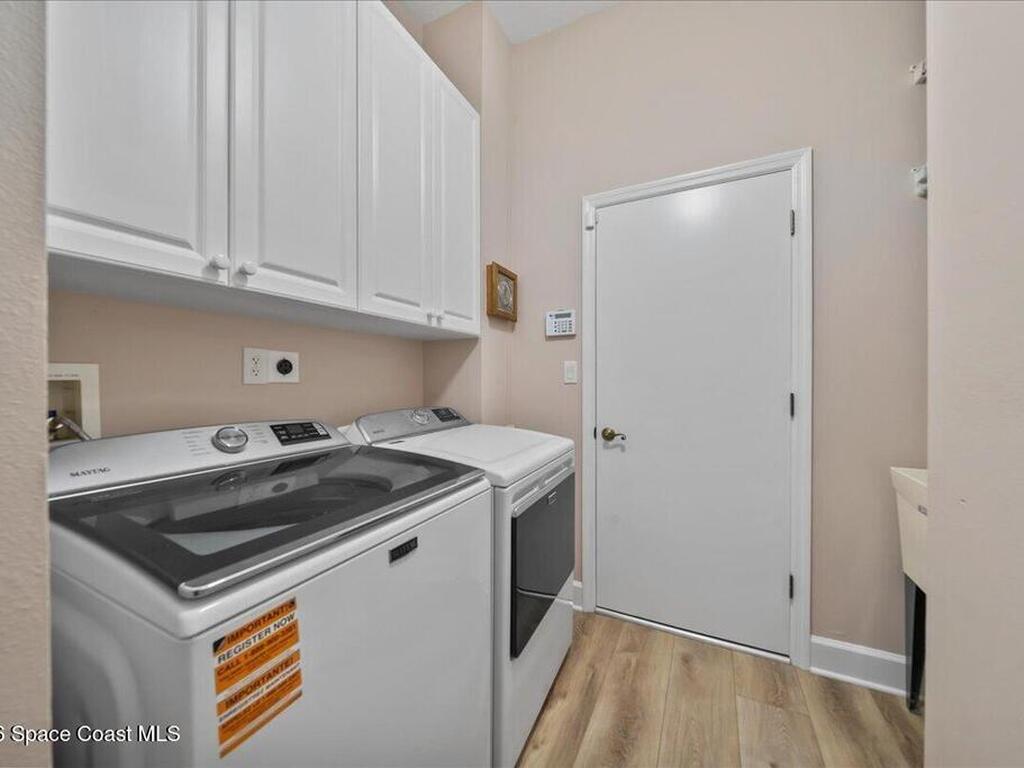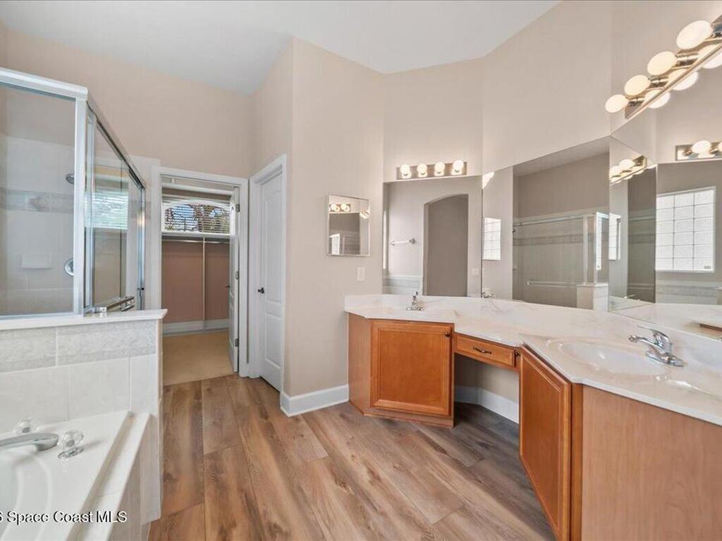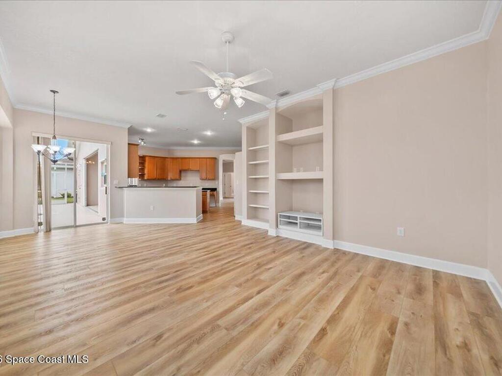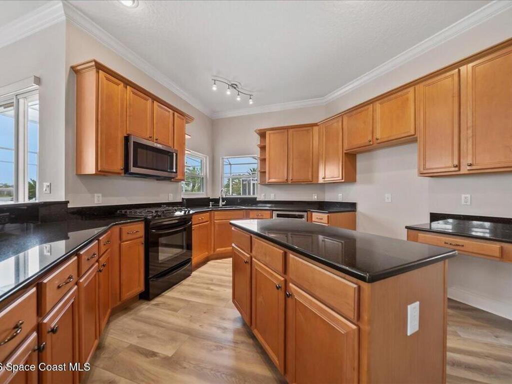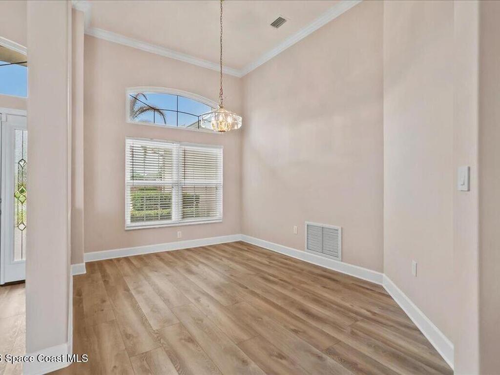 Live the Florida Lifestyle at Its Absolute Finest in the Heart of Viera. Welcome to an amazing pool home that truly defines what it means to live the Florida dream. Perfectly positioned on a premium waterfront lot with a long, tranquil lake view, this property offers a daily backdrop of shimmering water, colorful sunsets, and peaceful serenity that never gets old. From the moment you arrive, the extended driveway sets the tone--offering both impressive curb appeal and plenty of space for guests. Step through the brand-new leaded glass front door with sidelights, and you're immediately greeted by a light-filled interior enhanced by fresh interior and exterior paint, creating a crisp, move-in-ready experience. Inside, the home exudes style and comfort with luxury vinyl plank flooring in neutral tones, perfectly complemented by elegant crown molding that adds a refined, high-end feel throughout the main living areas. The kitchen is built to impress with real wood cabinetry**continued