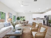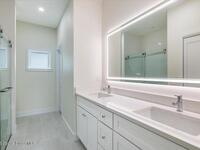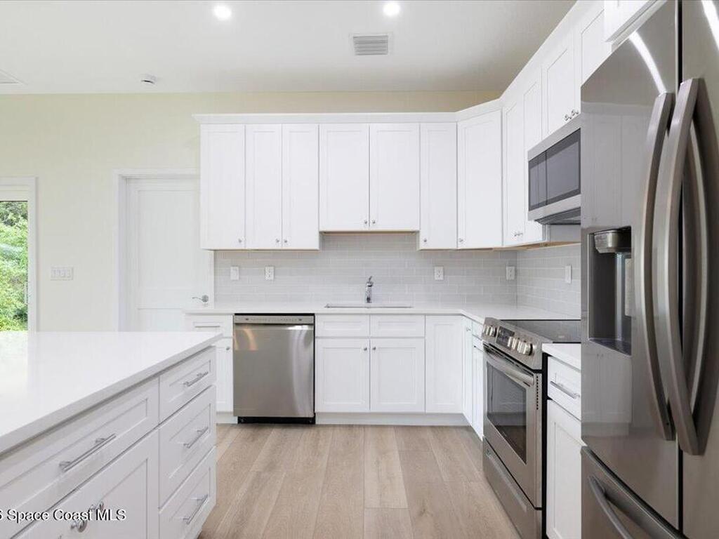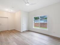 Brand-new construction offering 3 bedrooms, 2.5 bathrooms, and a 2-car garage with solid CBS construction and energy-efficient features throughout. This thoughtfully designed home features 9'4'' ceilings, R-33 attic insulation, high-efficiency HVAC, impact Low-E windows and sliding glass doors, and durable architectural shingles. Inside, enjoy luxury vinyl plank flooring and an open-concept layout highlighted by a stylish kitchen with a large center island, 8' shaker cabinets, quartz countertops, and a fully tiled backsplash. The spacious primary suite includes private porch access, a walk-in closet, and a beautifully finished bath with dual vanities, quartz tops, a lighted mirror, and a frameless glass shower. Two guest bedrooms share a well-appointed bathroom, plus an additional powder room. Complete with county water, septic drip system, and a laundry room with cabinetry and quartz counters, this home blends quality construction with modern comfort.