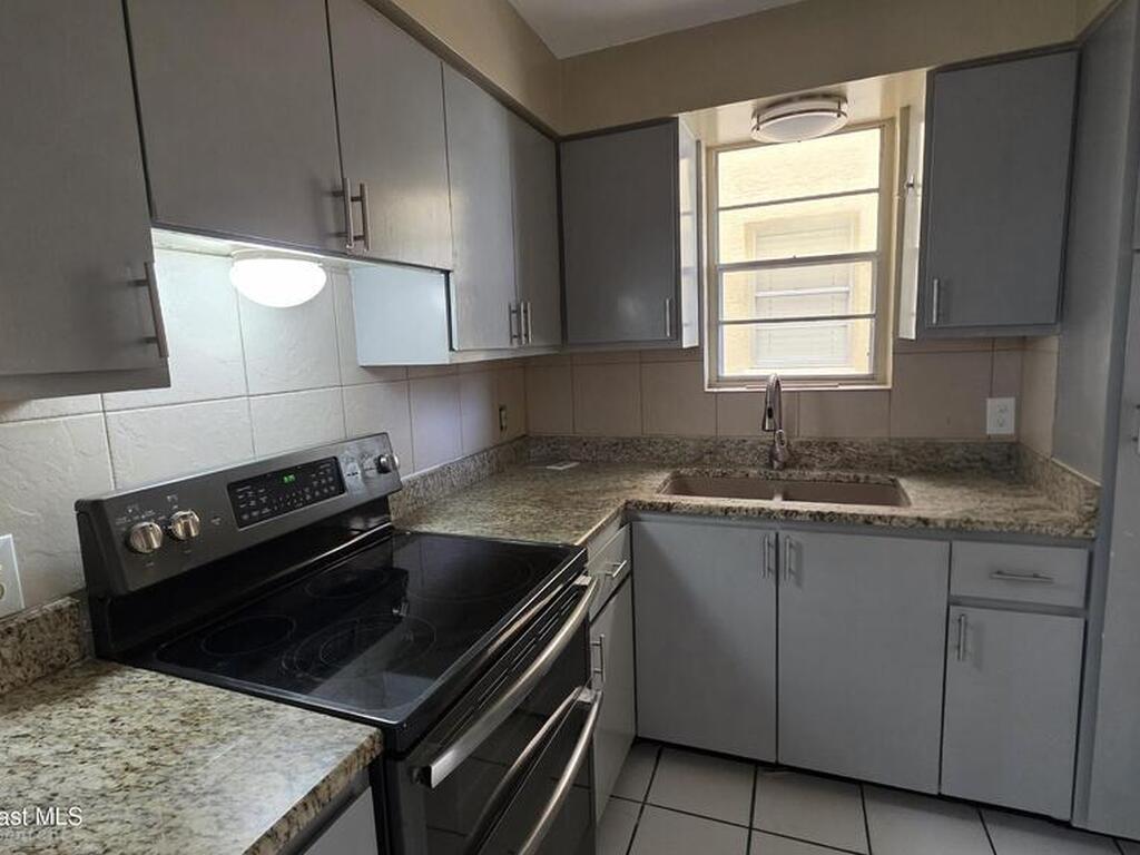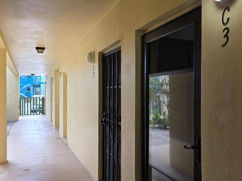 Cute first floor unit 3 blocks from the sand!! Slider door view looks out to beautiful Veteran's Park and public library across the street. Assigned parking spot just outside slider and has a key lock for safe easy entry. Unit has 1 bedroom, 1 bath, large stainless fridge and plenty of room to make this home your own! Great rental potential! 3 month minimum, furnish the unit and catch one of our many space contract workers. Monthly Friday Fest not too far away. Great rocket views, just stand outside! Come check out your next beachside retreat!!