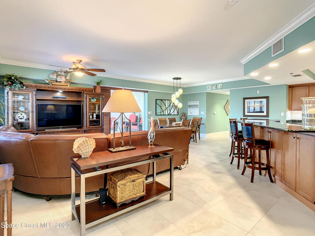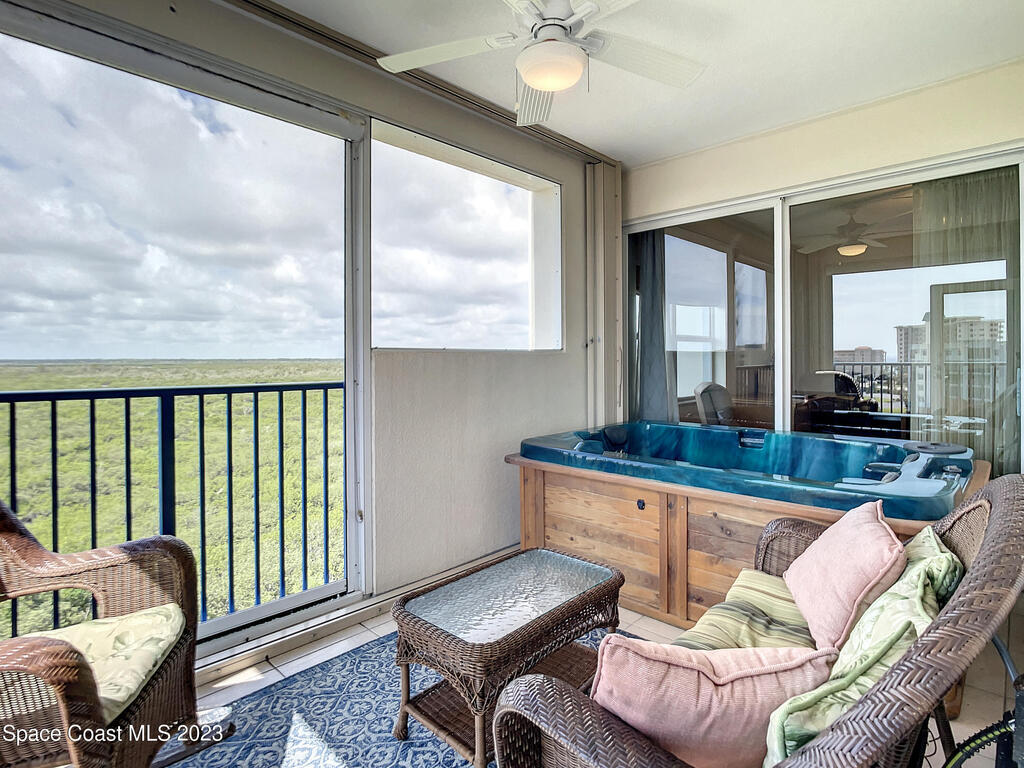 CHECK THIS OUT! This spectacular top floor fully furnished PENTHOUSE condo offers the best of both worlds; ocean views as well as stunning sunsets and estuary views. Also, admire the launches from Cape Canaveral from your own private balcony! This impeccable condo has an extra 300 sqft loft which is currently a game room with a pool and ping pong table, and other games for friends and family. All 3 bedrooms have an en suite bathroom with the master bathroom offering separate dual vanity sinks, a jetted jacuzzi tub, a separate walk-in shower, and a separate toilet room. Not only is this the most sought after building with the most popular style PENTHOUSE, but every inch of this 3843 sqft unit is decorated to the hilt with numerous upgrades and features and only steps away from