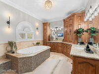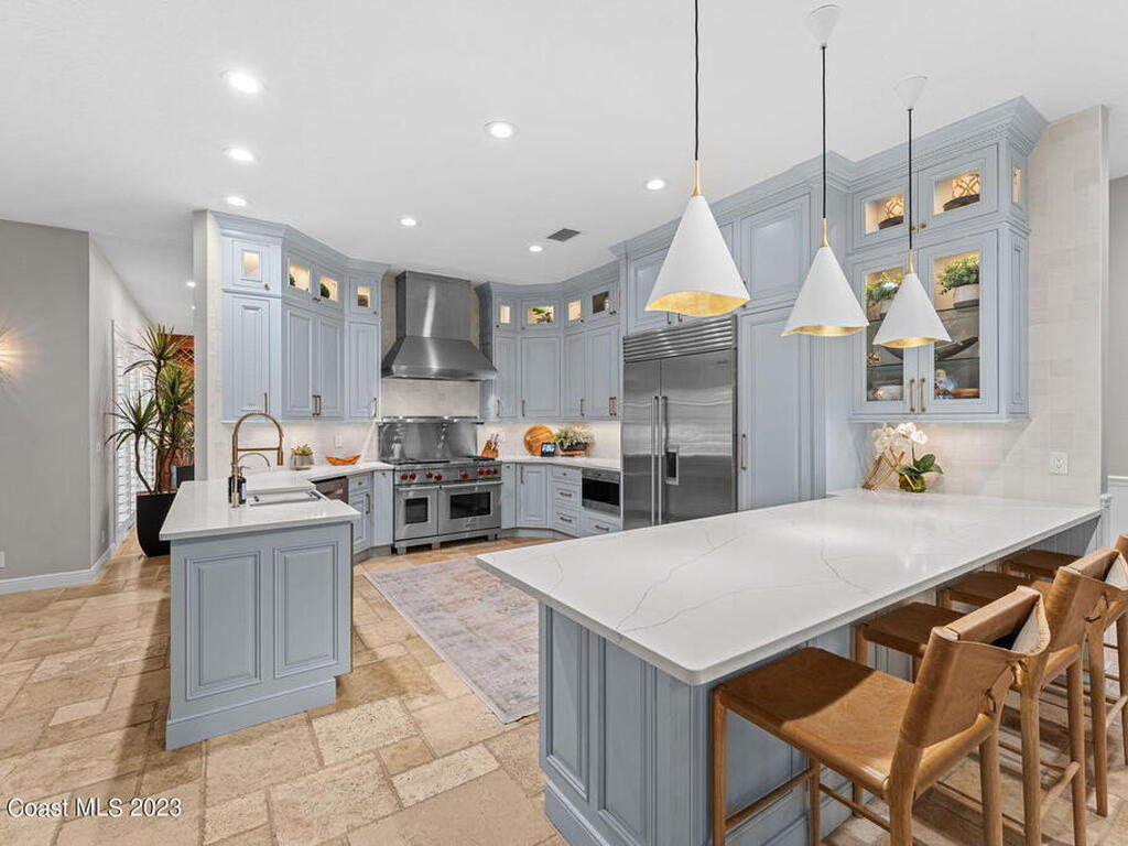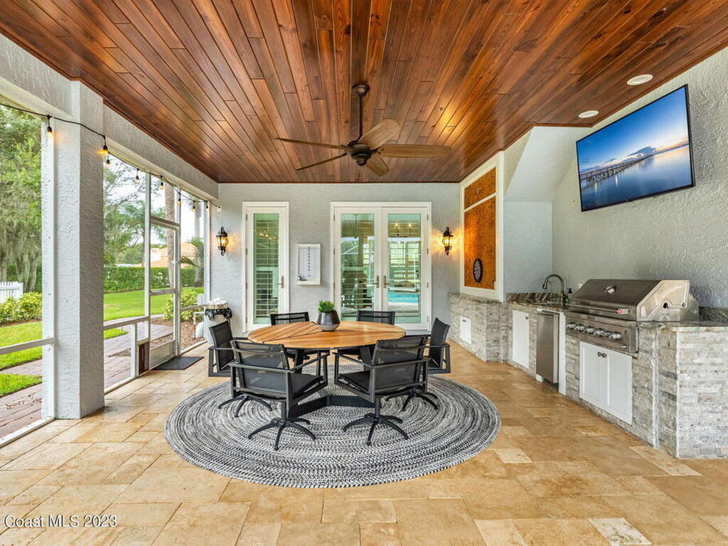 FULLY FURNISHED, RENOVATED MAGICAL MANSION! Electric gates open to this majestic showcase encompassing a NEWER tile roof & the finest, professionally designed interiors. Travertine & hardwood floors complement premium quartz & granite surfaces. 2-story ceilings tower over a formal living rm w/a built-in beverage bar & glass doors framing the pool. A coral stone fireplace centerpieces the family rm. Exquisite kitchen w/flush wood cabinetry, Wolf gas oven range, SubZero fridge & Bosch dishwasher. Luxury upstairs main suite w/double walk-ins, jetted tub, multi-head steam shower & dual sinks. TO-DIE-FOR separate dressing quarters, a library & office. Tommy Bahama lanai & an outdoor kitchen overlooking the saltwater pool & spa w/multiple water features, a basketball court & custom fire pit.